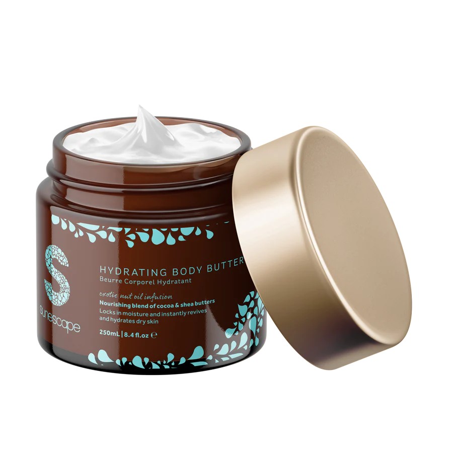 Your skin deserves the royal treatment and with Sunescape’s Hydrating Body Butter, you’ll get just that! This rich, indulgent body butter is infused with Cocoa and Shea Butter and exotic nut oils, that lock in moisture, revive and hydrate dry skin and extend the life of your tan. With a light, creamy texture, this body butter melts into skin easily – apply round the clock to maintain a fab faux glow.